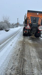 după ora 16:30 – În urma ninsorilor din ultimele zile, m-am deplasat în teren pentru a verifica starea drumurilor județene și eficiența măsurilor de deszăpezire pe DJ 205B, DJ 205C, DJ 205D și DJ 205R. Scopul nostru a fost acela de a evalua modul în care s-au desfășurat operațiunile de întreținere a drumurilor în condiții de iarnă, verificând dacă s-a împrăștiat material antiderapant conform necesităților, dacă utilajele de deszăpezire acționează corespunzător și dacă există sectoare de drum blocate sau cu trafic îngreunat.